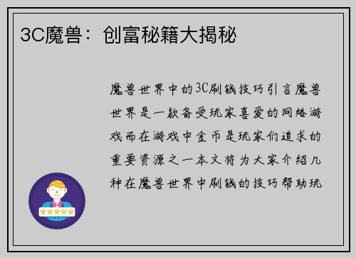 魔兽世界是一款备受玩家喜爱的网络游戏,而在游戏中,金币是玩家们追求的重要资源之一。本文将为大家介绍几种在魔兽世界中刷钱的技巧,帮助玩家们快速积累财富。